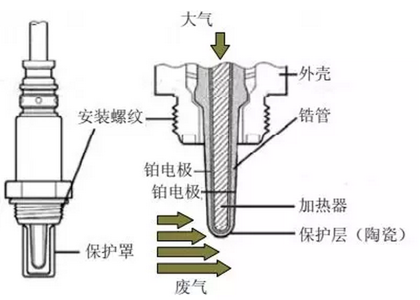 1、傳統氧化鋯式氧傳感器只能檢測出氧濃度是稀還是濃,只有稀和濃這兩個狀態,不能檢測濃和稀的程度,而且信號微弱,抗干擾性差,但價格便宜,目前很多中低檔車型仍在使用。新型空燃比傳感器,檢測范圍廣,精度高,燃油噴射修正更加精確,但價格稍貴,目前多在中高檔車型上應用。隨著排放法規的標準的提高,傳統的氧化鋯式氧傳感器逐漸被新型的空燃比傳感器取代。